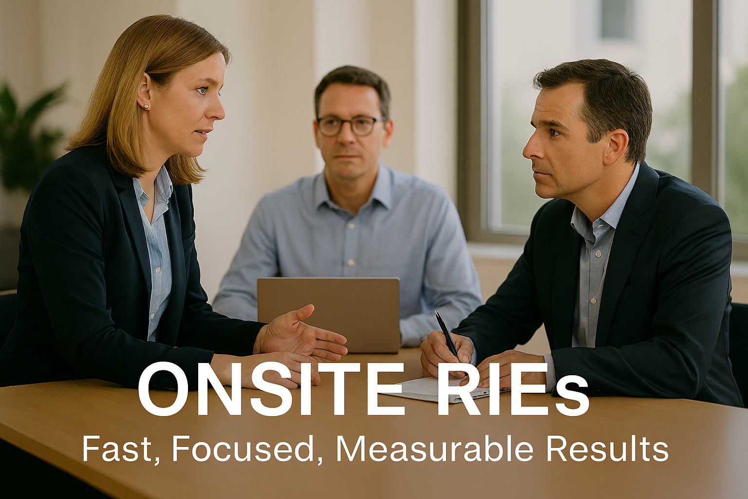 Engage in onsite RIE's for $102 per hour to address specific business challenges. Schedule a session to enhance your operational efficiency.